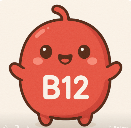 Salut, je suis B12, la vitamine qui garde ton cerveau éveillé et ton sang bien rouge.
